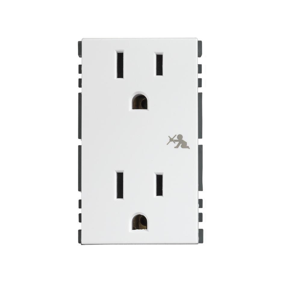 La serie Simon 25 plus nos trae esta nueva toma de corriente dúplex 2P+T, con su exclusivo sistema de seguridad que impide introducir cualquier objeto en los bornes que no sean las patas de un enchufe. Es, además, un diseño muy elegante, fabricado en policarbonato técnico y aleación de metales, cobre, zinc, plomo y latón con un acabado color blanco para combinar con cualquier pared de cualquier tipo de ambiente.